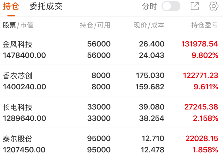 香农芯创:昨天竞价直接高开,盘中最高冲超13个点,张哥周二介入后浮盈一度快到20个点,妥妥的大肉雏形!虽说后面有点回落,最终收了根阴线,但这根本不算事儿——主力可是大幅流入的,再加上现在存储板块一片向好,这明显就是主力借着高位清洗浮筹、蓄力夯实筹码呢!整体向上的趋势完全没改,短期咱们盯着170整数的支撑就行,只要承接不差就稳得住。现在手里还有近10个点肉,完全不用慌。等这波分歧化解、主力筹码夯扎实了,有可能还能沿着当前的上升趋势继续往上走!