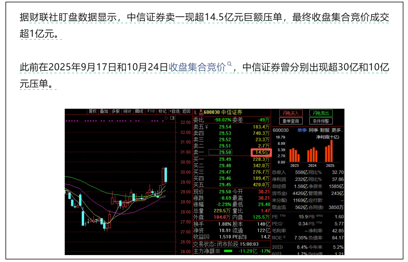 第一,中信证券再现巨量的卖单,慢牛的导向不变。