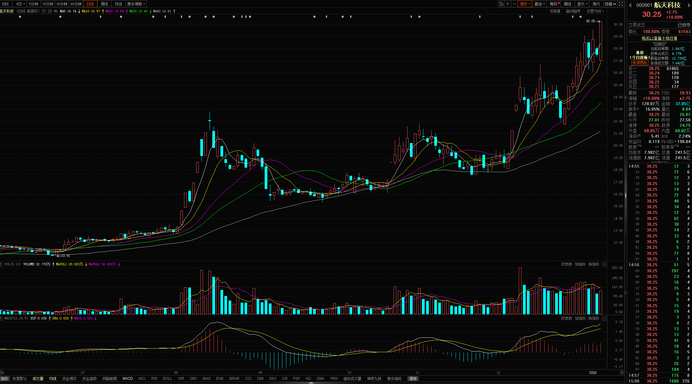 近期航天热度居高不下,从走势来看,震荡拉升后,昨天依托10日均线向上拉板,结构上形成了加速,有机会走出一波爆发行情。所以今天只要回踩29.55刹住,会上去搭个快车。