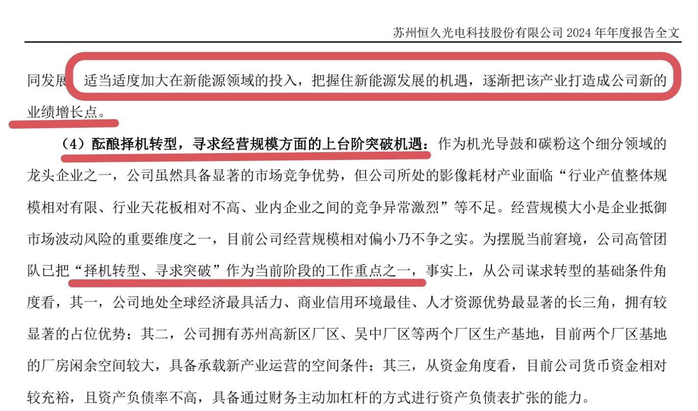 公司也在24年年报中明确指出,适当适度加大在新能源领域的投入,把握住新能源发展的机遇,逐渐把该产业打造成公司新的业绩增长点。酝酿择机转型,寻求经营规模方面的上台阶突破机遇。
