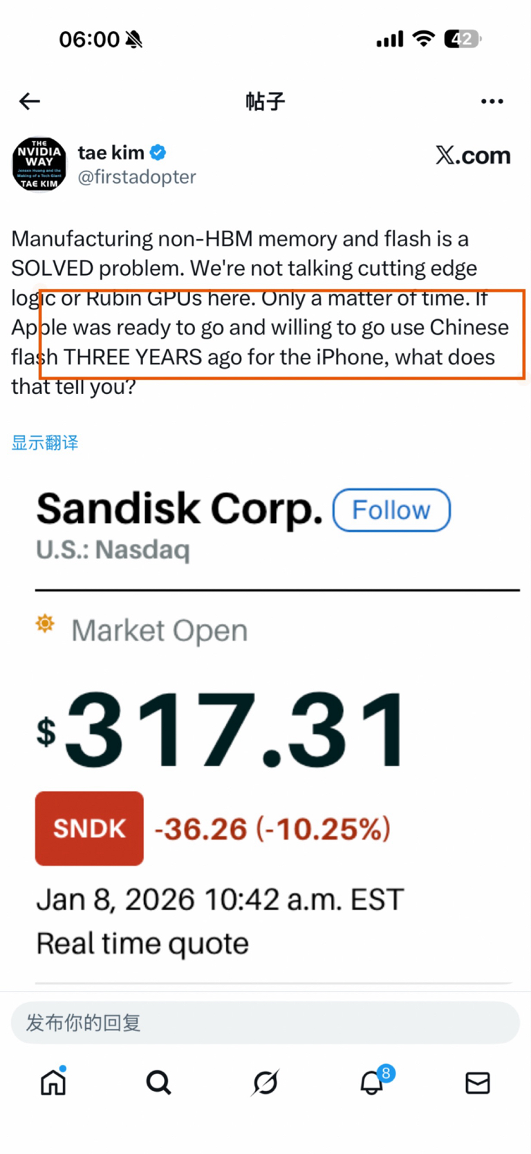 Sandisk 盘中暴跌超 10%,跌得毫不犹豫。这不是情绪波动,这是一条产业级信号被市场瞬间读懂后的“估值重算”。对我们国家的存储行业,却是实打实的重大利好!原因竟是国产替代,替代到了美国!