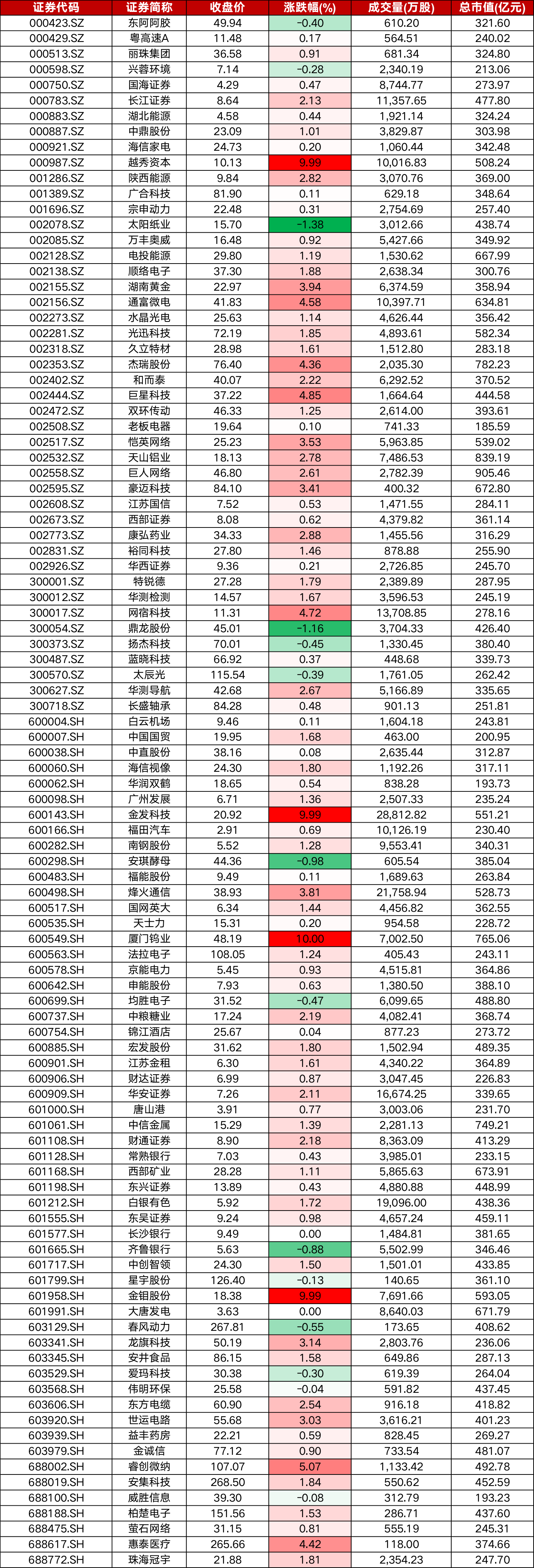 今日成分股厦门钨业、越秀资本涨幅居前。
