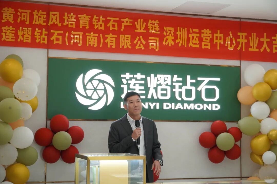 许昌市投资集团国有产业投资有限公司董事长周军民代表上级公司致贺词,周总表示,深圳运营中心开业是许昌市培育钻石产业延链、补链、强链的生动实践。作为许昌最大的国有投资公司,许昌市投资集团自2024年控股黄河旋风以来,持续加大研发投入,更新生产设备,延伸产业链条,带动产业转型,共同致力于推动超硬材料产业链提质升级。莲熠钻石承载着母公司向下游珠宝消费领域延伸的战略使命,将依托黄河旋风在超硬材料领域三十余年的技术积淀与产能优势,构建覆盖毛坯贸易、裸钻批发、成品定制、品牌加盟的四大核心业务矩阵,为全球合作伙伴提供一站式解决方案。