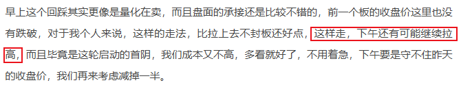 平潭之前我就和大家说过,就是一个震荡的走势,原因是主力要控盘,要控住异动,现在是很容易被监管的,前几次的教训已经足够了,这里不出关就大概率不会去拉,这点其实从时不时来一刀的走势就能看出来,这肯定是主力资金的行为。还有就是现在的航天太过火热,短线资金离开不少,毕竟平潭这要死不活的状态确实很磨人,外面的板块又在到处飞,没有耐心的资金有利润肯定就会选择走人。下周航天分歧回调的可能性不小,一是大部分都在卡异动,航发周一不直接绿盘的话,被送进去的可能性也很大,所以,咱们就算假设现在是在借着监管震荡出货,这种变盘节点,也不是卖出的时候,更何况我们是有利润垫在的,20日线的趋势一天没有有效跌破,那么就继续持有就好。