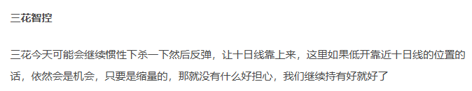 三花今天的表现,要比早盘预想的还要强一些,这里昨天很多人是对三花表示担忧的,老马其实也说过多次,炒股不能只看涨跌,看k线去分析,本身三花走的就是趋势,会慢一些,不是那种一直大阳涨停的股票,缩量回调就是很正常的事,加速才是我们要考虑卖出的时候。下周我们要注意的是前高的压力,必须是量价齐升去突破,不然的话,就要考虑减仓。