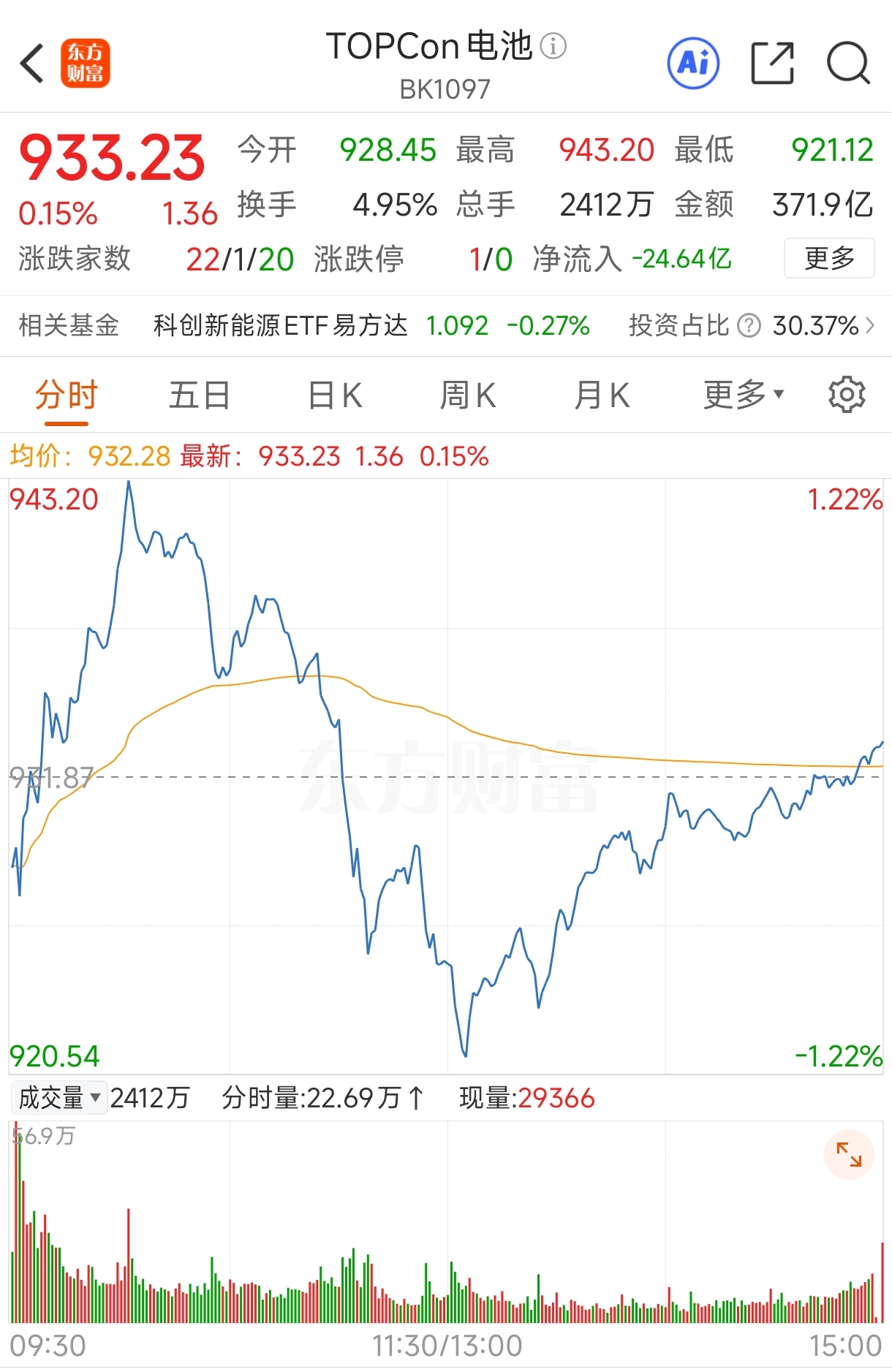 回看周五的行业板块,光伏板块电池板块都是冲高回落。