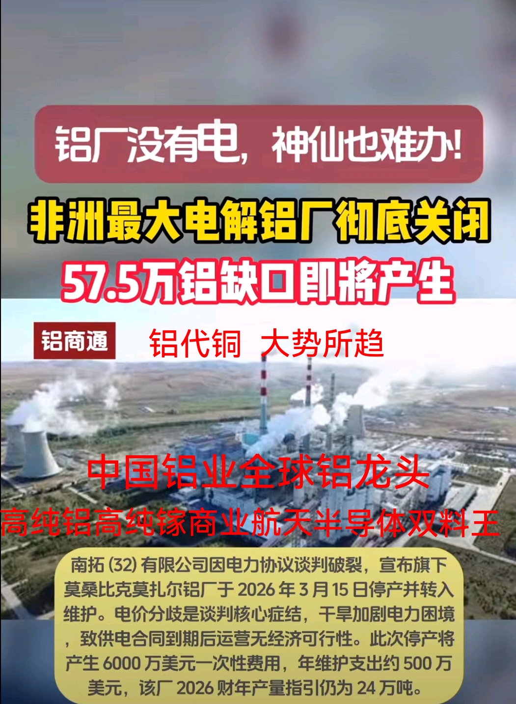- 上涨催化:新能源需求超预期、海外电力短缺加剧、铜价持续走高强化替代、商业航天/半导体高纯铝订单落地。