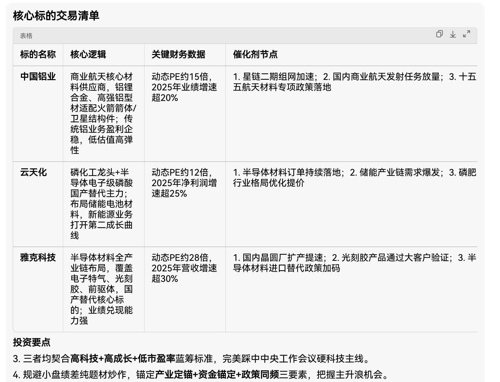 3. 政策加持:半导体材料国产替代、商业航天扶持政策密集落地,战略价值凸显。