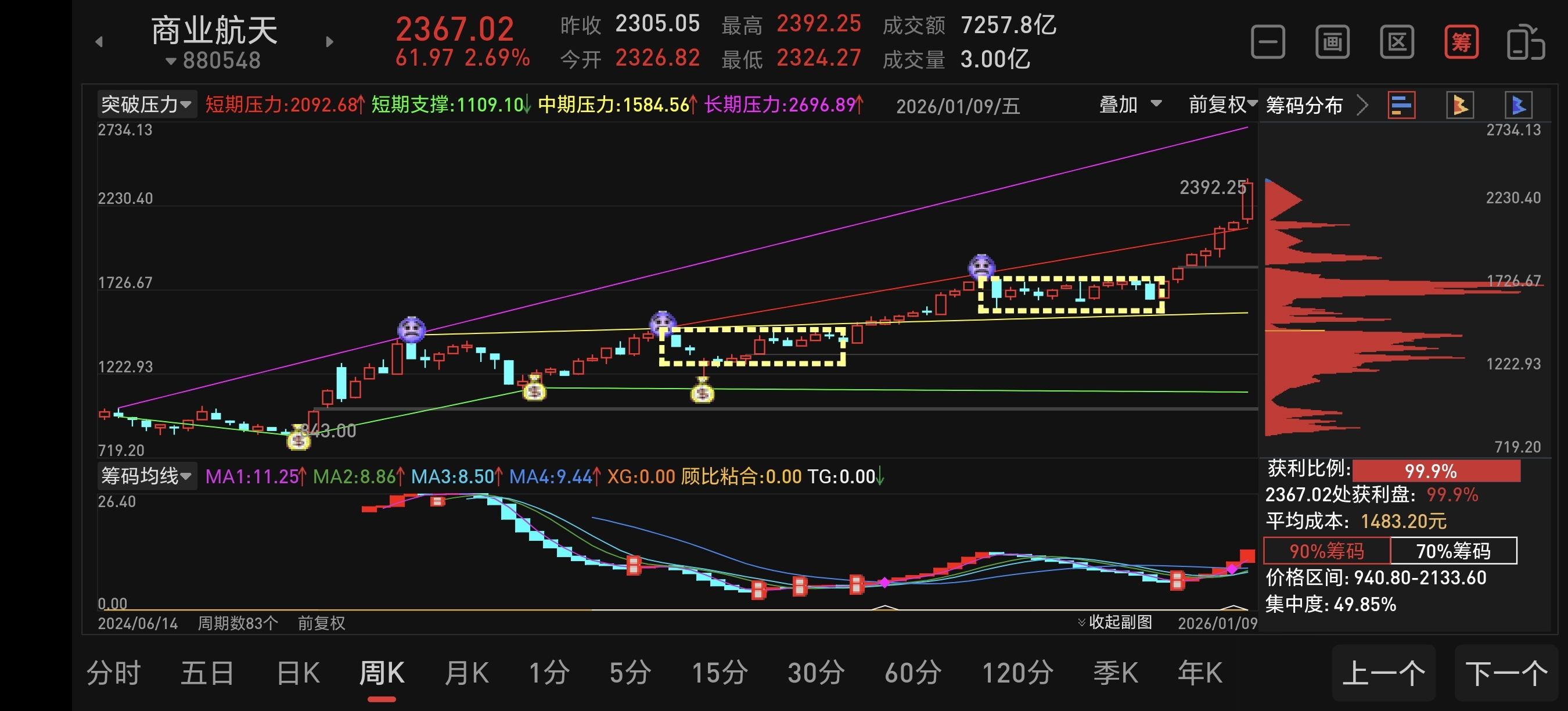 下周商业航天很多核心票面临偏离100%和票200%渡劫预警,由于市场过于一致性,个别高标会出现压异动失败情况,需要提前做好应对和仓位调整。