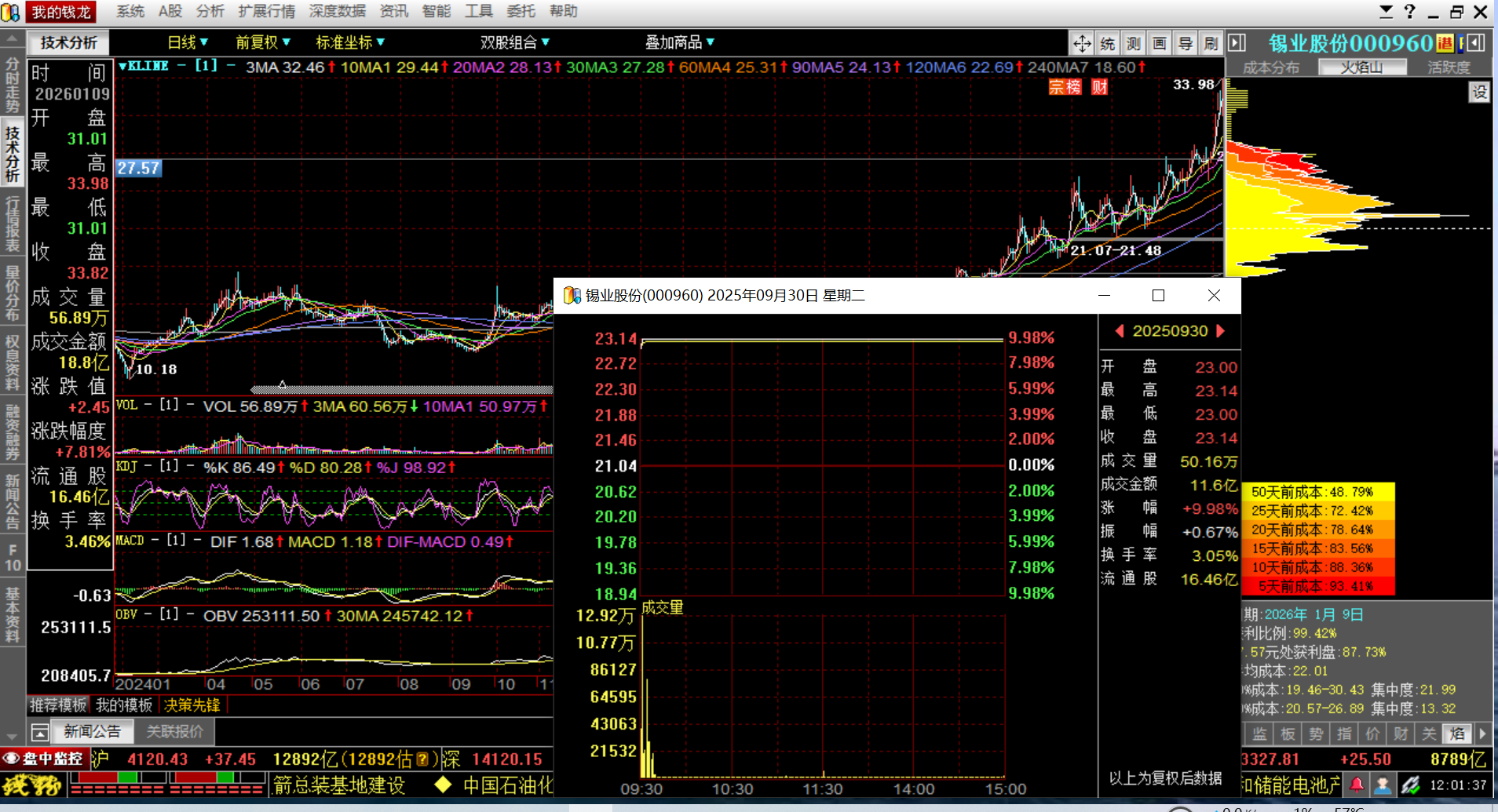 锡业股份25-9-30日,主力资金开盘瞬间拉涨停,资金一直未出局,随后出现连续推升47%。