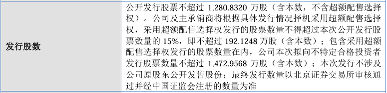 2. 发行方案:公司发行前总股本3842.5000万股,拟发行1280.8320万股(不包含超额配售),发行后总股本5123.3320万股(不包括超额配售)。拟募集资金43000万元,拟发行价33.57元。