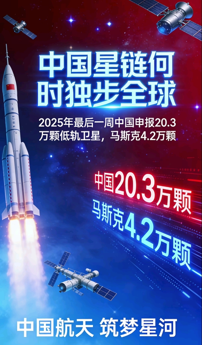 1.申报规模:2025年12月29日提交的CTC-1(CHN2025-79441)和CTC-2星座各申报96714颗卫星,合计193428颗,占中国本轮20.3万颗申报总量的95%以上 。