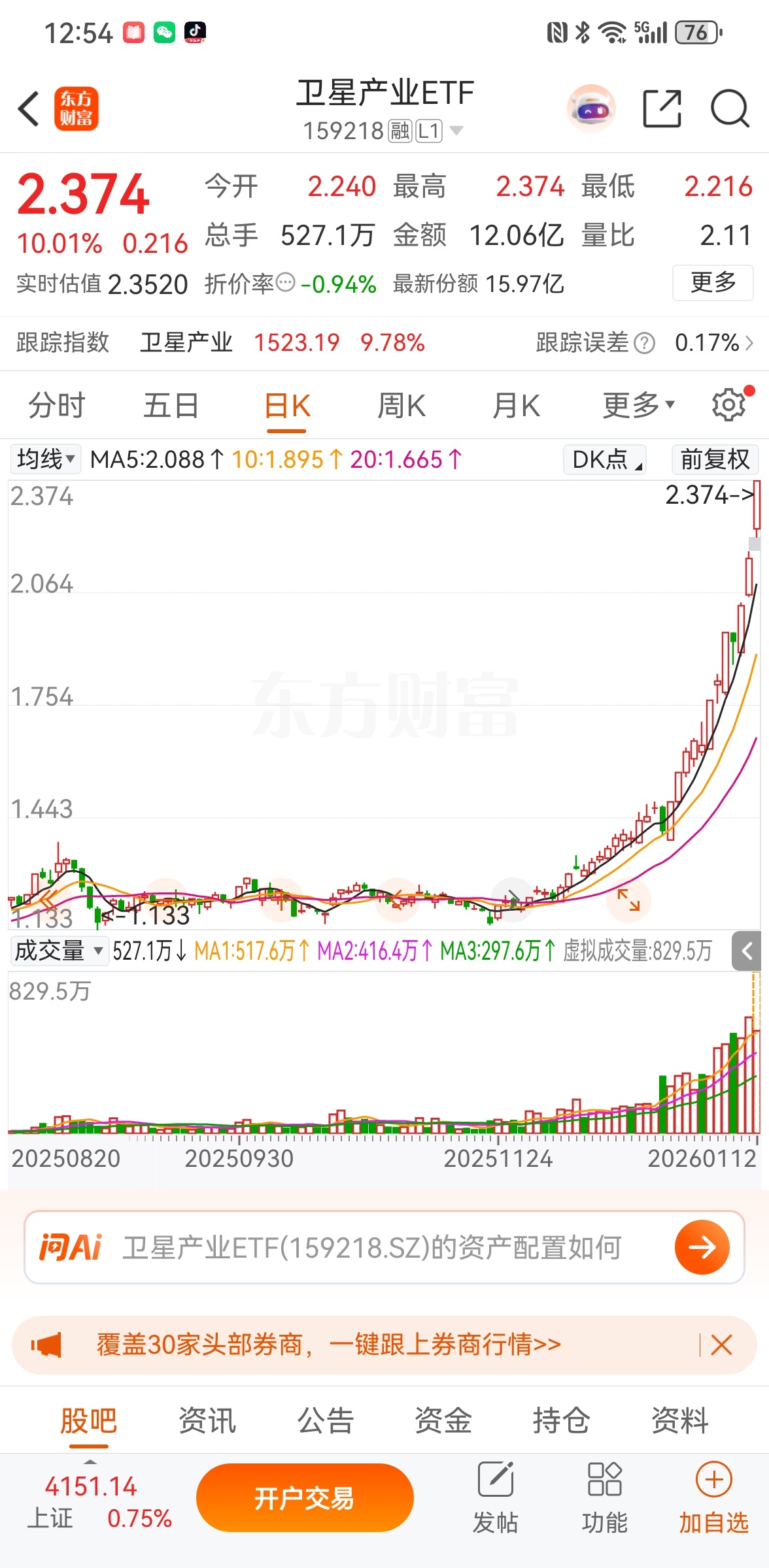 核心结论:该ETF在2026年1月12日触发10%涨停,五日涨幅达30.44%,反映商业航天板块短期情绪,资金扎堆进场!