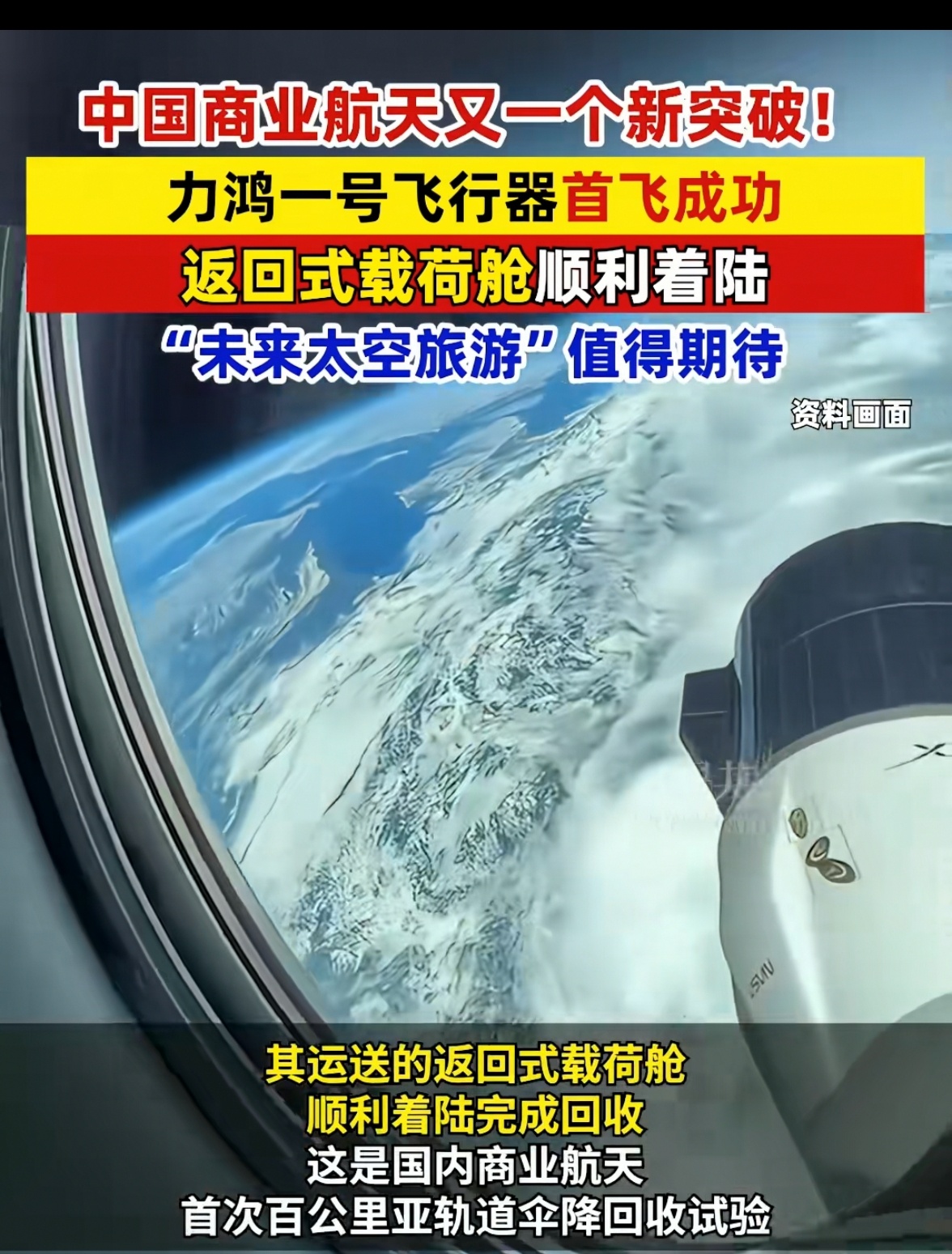 禅者信步2026.1.12子夜抒怀这张图片聚焦中国商业航天的重要突破事件——力鸿一号飞行器首飞成功,结合最新资讯,核心信息与行业影响解读如下 :