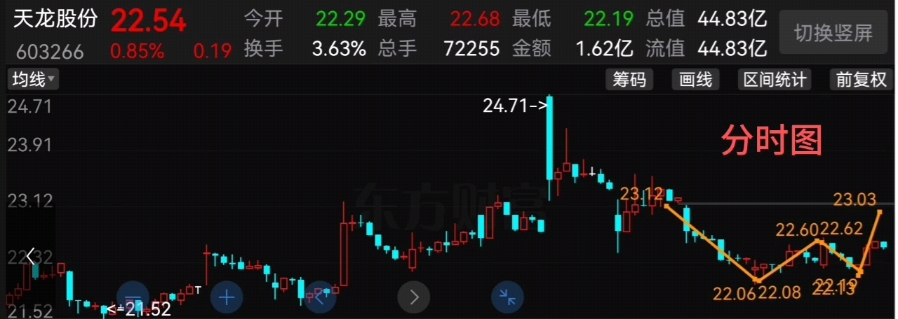 $天龙股份(SH603266)$ 天龙股份收盘收了一个小阳线,本来预测的是开盘后先下探,在分时形成双底后再反弹,结果开盘它先上涨后再下跌再反弹感觉力度就小了,周五反弹力度还是太小,连10日线都没有站上。而且 macd 红柱继续缩短,有形成死叉的趋势,所以下周一走势就显得较为关键了,如果继续下跌,那么下周 macd 就有形成死叉的危险,下周一收盘股价需要站上5日线才行。周线看高开阴线回踩5周线,继续沿着5周线震荡攀升。