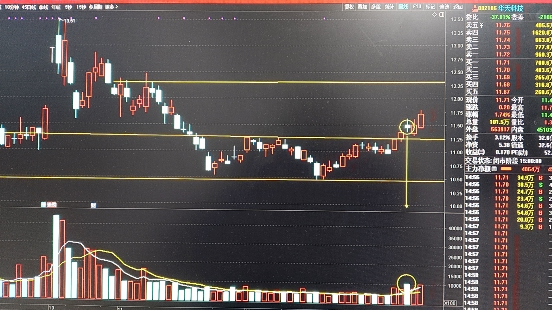华天科技明显弱于半导体板块,在下方箱体内构筑双底形态后,于周二突破了颈线位,周三收出高量假阴螺旋桨K线形态后,周五继续缩量反包,这种走势还是比较健康的,上方压力位左12.3元,有短线技木的可以小仓位反T一把,没把握的持仓躺平即可,这里的成交量也刚刚启动,该机会大过风险!