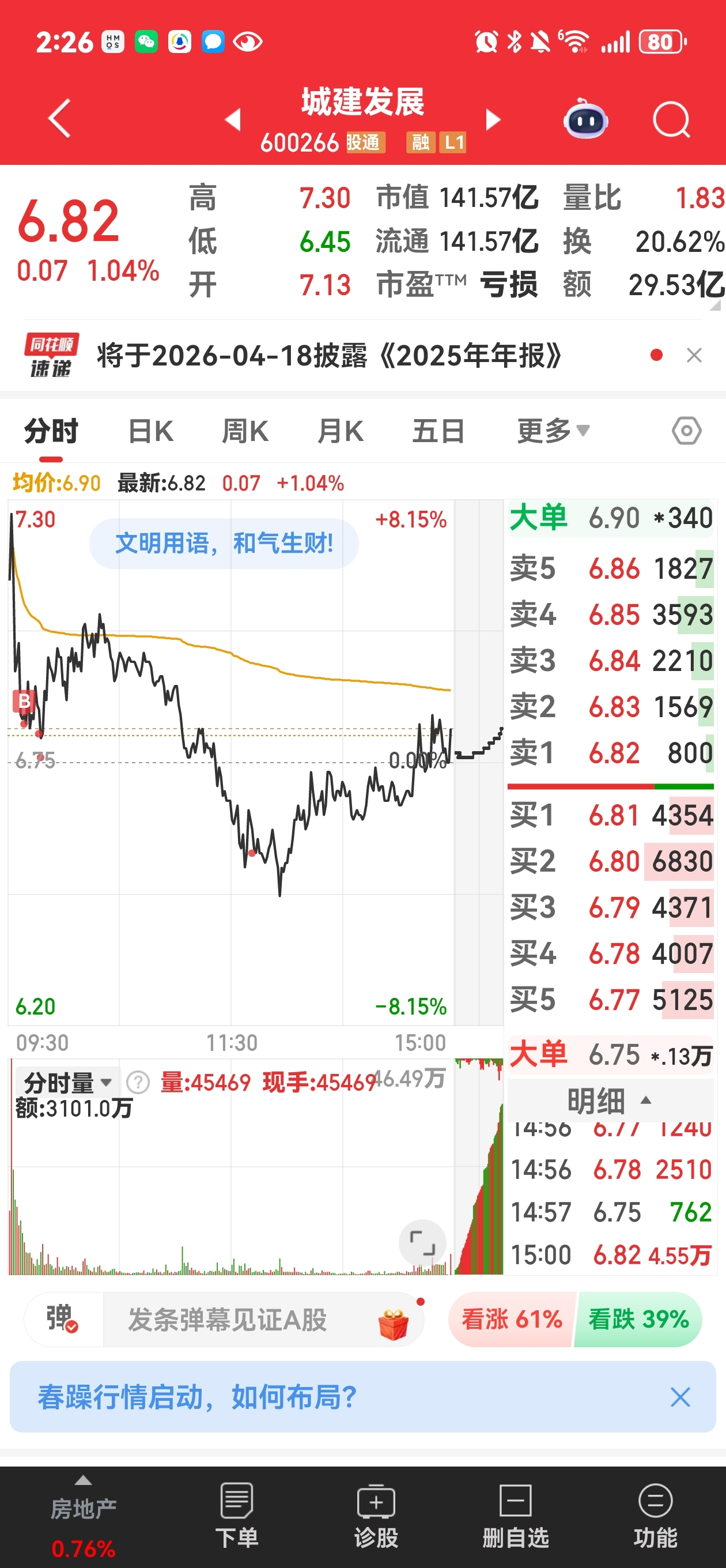 错过了航天发展,错过了鲁信创投,错过了金风科技,怎么能再次错过城建发展?恐高,那就高低切,却换到具有辨识度和稳健的城建发展,或许与现在去买航天发展更具性价比与爆发力。投资有风险,参考需谨慎。
