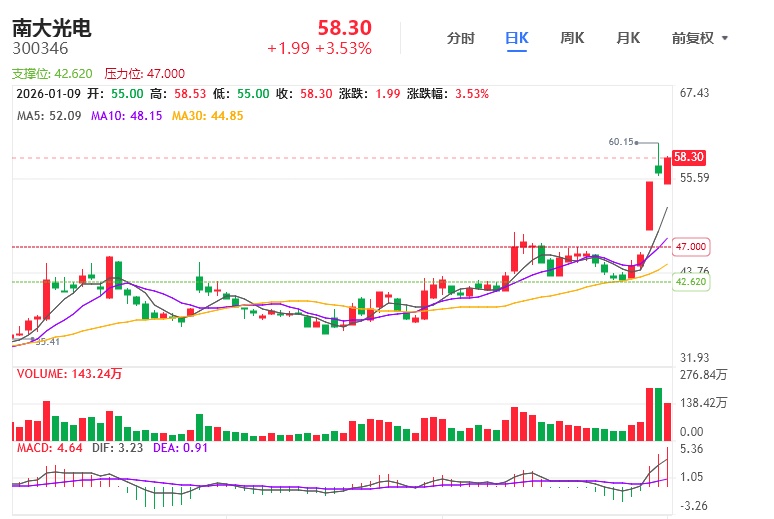$南大光电(SZ300346)$:半导体材料国产替代的稀缺性龙头,光刻胶 + 电子特气 + 前驱体三大卡脖子赛道的技术 ,短期内已强势突破压力位,可适当关注5日均线;周五走出一个缩量收阳趋势,周四早盘有提及可以选择轻仓布局1-2成,在车上的明日若冲高可以选择止盈下车,反之考虑减仓选择做T。