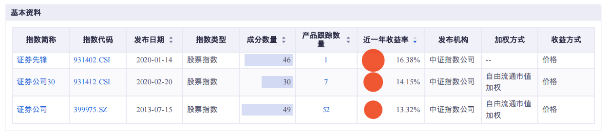 6、行业投资可通过指数基金:有基金跟踪的证券指数有三个:中证全指证券公司指数(399975)、中证证券公司30指数(931412)和中证证券公司先锋指数(931402)。