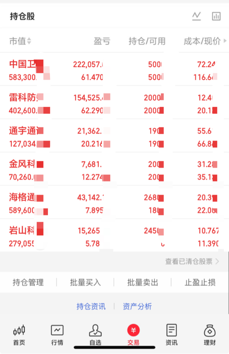 持有 中国卫星 雷科防务 通宇通迅