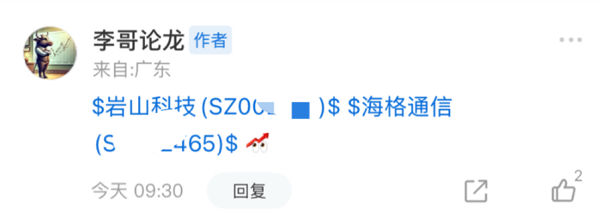 今日建仓岩山科技 加仓了海格通信
