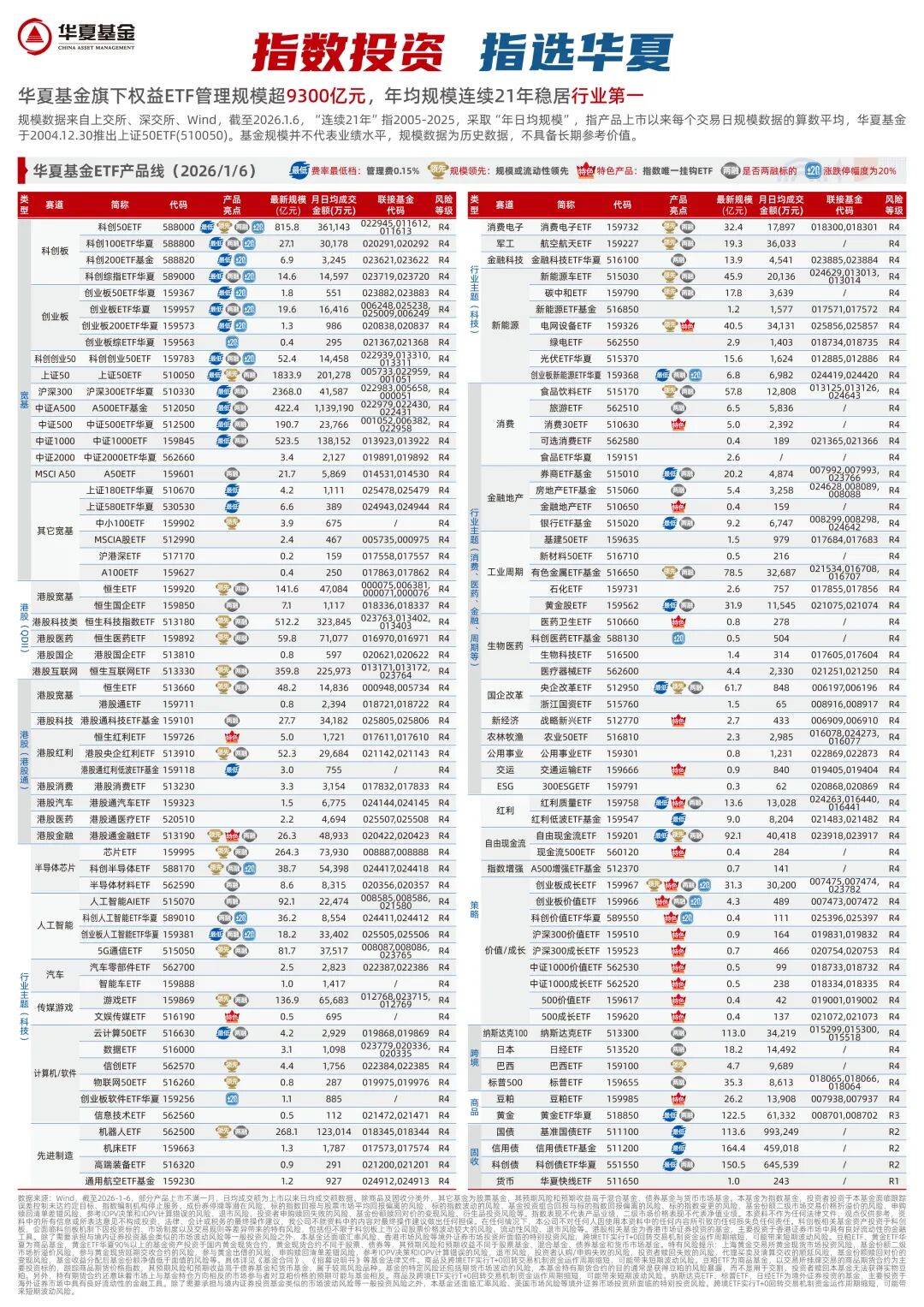 以上基金费率详见基金法律文件。上述内容仅反映当前市场情况,今后可能发生改变,不代表任何投资意见或建议。指数过往业绩不代表其未来表现,亦不构成基金投资收益的保证或任何投资建议。指数运作时间较短,不能反映市场发展的所有阶段。ETF二级市场价格涨跌幅不代表实际净值变动。市场有风险,投资需谨慎。指数表现不代表产品业绩。数据来源:wind、华夏基金、深交所、上交所,个股不作为推荐。