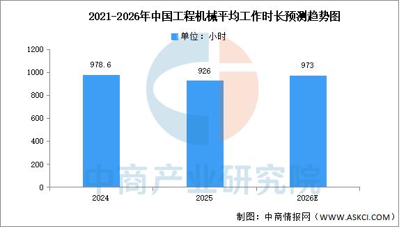 中商产业研究院发布的《2025-2030年中国工程机械市场需求预测及发展趋势前瞻报告》显示,2025年,中国工程机械行业平均工作时长整体承压,主要产品平均工作时长为926小时,同比下滑6.15%。从细分品类看,表现呈现显著分化:非公路矿用自卸车以1716小时位居榜首,彰显矿山等领域需求的相对韧性;汽车起重机(1228小时)、叉车(1116小时)和装载机(1088小时)亦维持在千小时以上,表现相对稳健。中商产业研究院分析师预测,2026年工程机械行业平均工作时长将呈现温和复苏、逐步增长的态势,预计平均工作时长将达973小时。