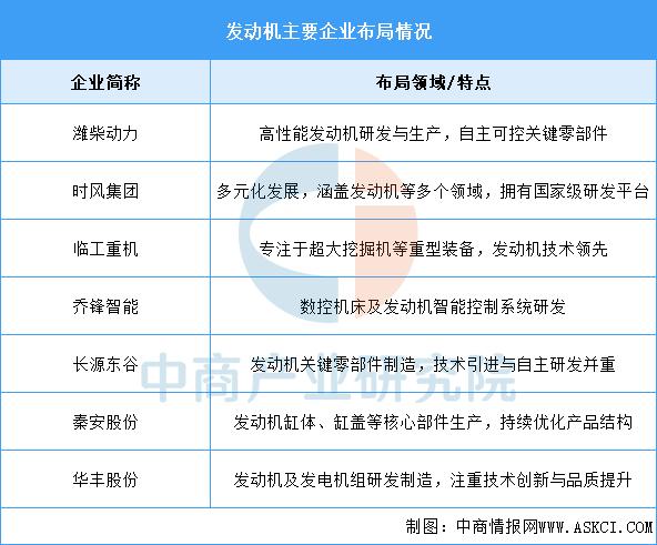 发动机行业的重点企业在技术创新、市场拓展和品牌建设等方面均取得了显著进展。这些企业不仅在传统的内燃机领域持续深耕,提升产品性能和可靠性,还积极拥抱新能源汽车市场,布局电动发动机、混合动力系统等新型发动机技术。具体如图所示: