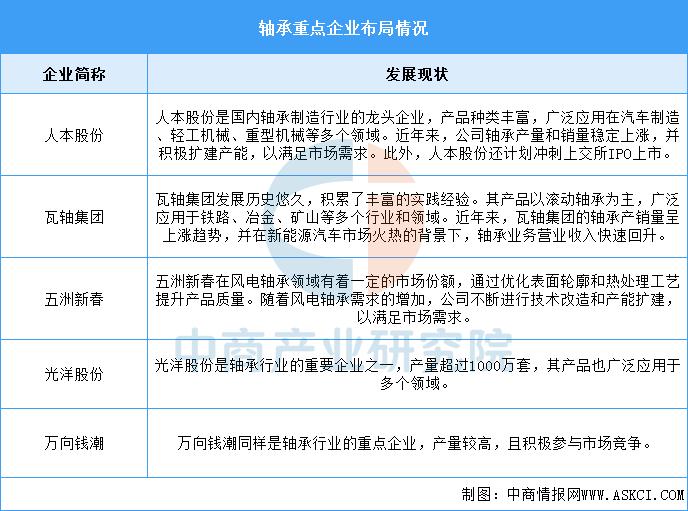 轴承制造行业作为机械工业的关键组成部分,近年来在全球市场展现出稳步增长的趋势,中国作为世界最大的轴承市场,正积极推动技术创新与国产替代。重点企业主要包括人本股份、瓦轴集团、五洲新春、光洋股份、万向钱潮,具体如图所示: