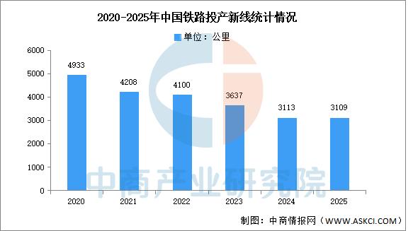 2025年全国铁路完成固定资产投资9015亿元,同比增长6%。铁路固定资产投资达到历史新高,铁路投资拉动作用充分显现。2025年,全国共投产新线3109公里,其中高铁2862公里。全国铁路营业里程达到16.5万公里。