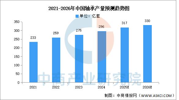 轴承是数控机床设备中的一种重要零部件,主要起支撑机械旋转体,降低摩擦系数,并保证回转精度的作用。轴承行业是我国重点发展的战略性基础产业,我国轴承产量呈现增长的趋势。中商产业研究院发布的《2025-2030中国主轴轴承市场现状及未来发展趋势》显示,2024年中国轴承产量约为296亿套,2025年约达317亿套。中商产业研究院分析师预测,2026年中国轴承产量将达330亿套。