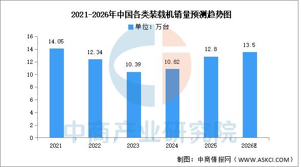 中商产业研究院发布的《2025-2030年中国工程机械市场需求预测及发展趋势前瞻报告》显示,2025年12月中国各类装载机销量约为1.22万台,同比增长30%。2025年1-12月中国各类装载机销量达12.8万台。中商产业研究院分析师预测,2026年预计将达13.5万台。