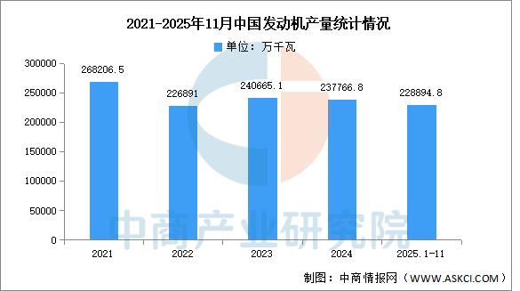发动机是一种能够把其它形式的能转化为机械能的机器,既适用于动力发生装置,也可指包括动力装置的整个机器。中商产业研究院发布的《2025-2030年中国发动机市场前景及投资机会研究报告》显示,2024年中国发动机产量达237766.8万千瓦,同比下降1.5%。2025年1-11月发动机产量达228894.8万千瓦,同比增长6.2%。