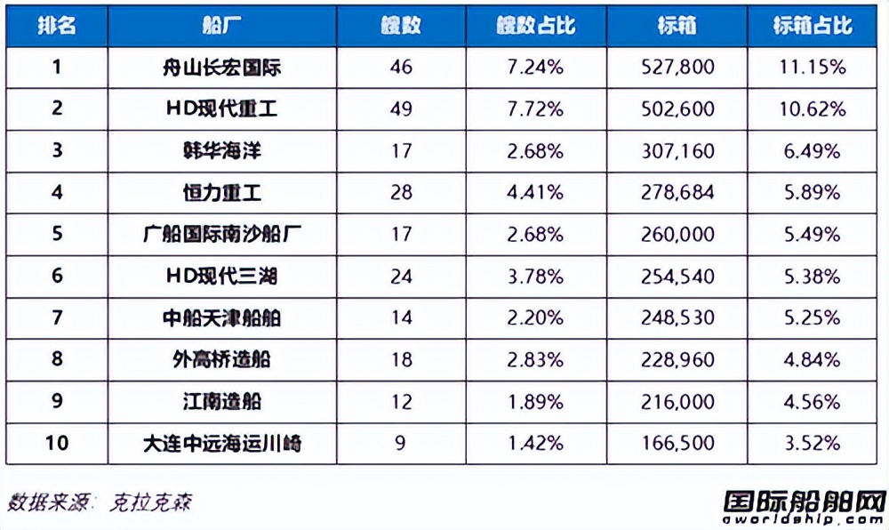 图片说明:2025年全球集装箱船新签订单排名,数据来源于克拉克森、国际船舶网