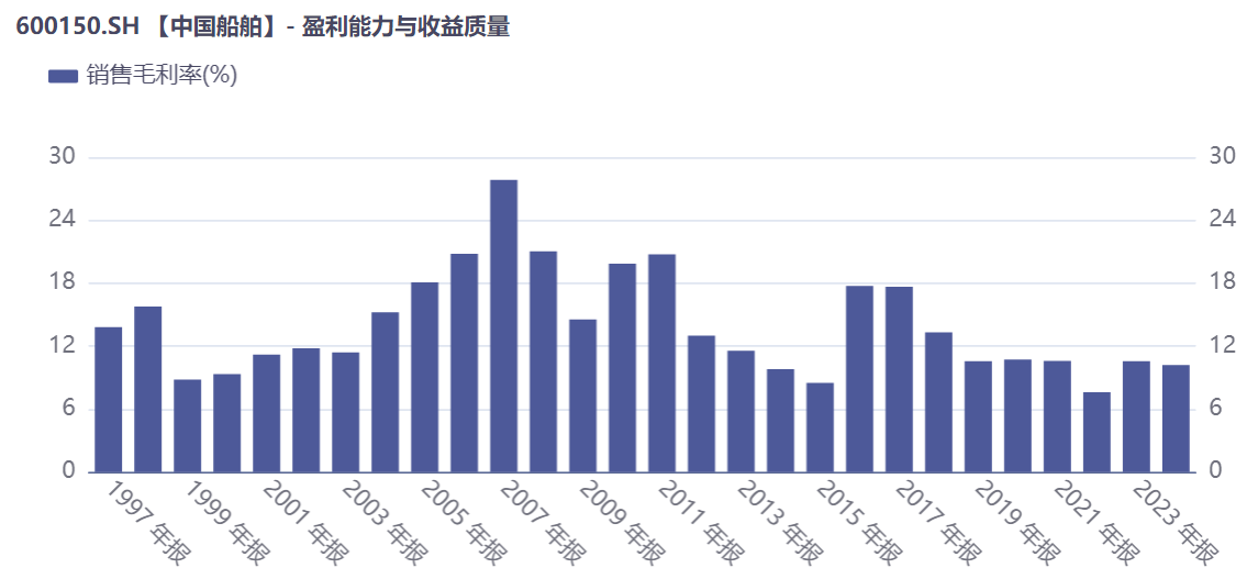 不过需要客观看待的是中船系业务结构中“军民融合”的特点。军船业务提供了跨越民船经济周期的稳定收入和订单,但其利润率波动具有一定的特殊性,受国家装备采购政策和定价机制影响,与民船市场的公开定价逻辑有所不同。因此,在考虑长期业绩稳定性方面,可以主要关注民船大周期对于企业盈利水平的贡献。