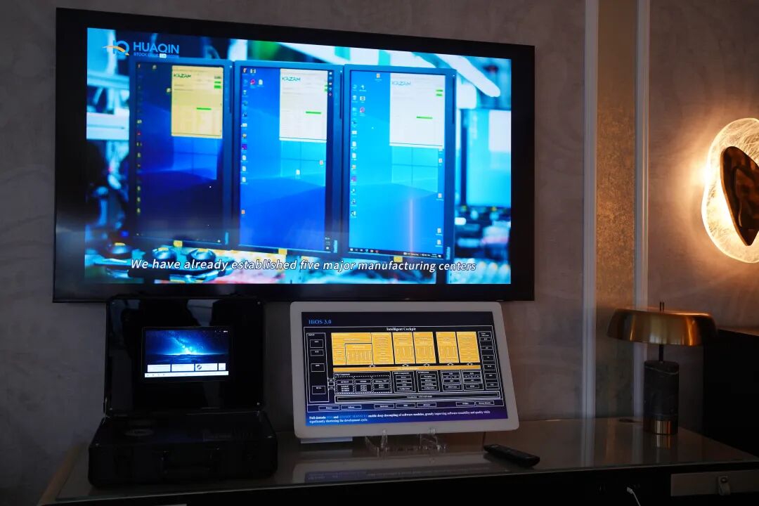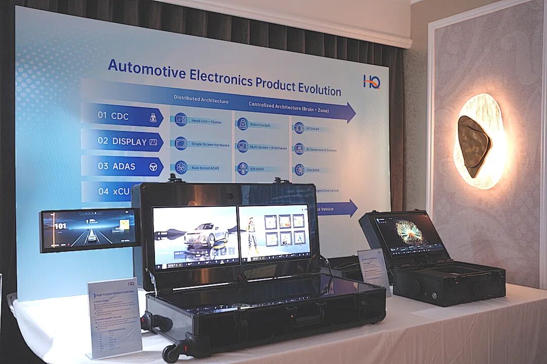 从消费电子迈向汽车电子的“移动空间”,华勤技术以“全栈自研+生态协同”布局智能出行赛道,在汽车电子展区集中展示了覆盖座舱、智驾、车身三大领域的产品与解决方案。依托仪表、中控、HUD、DMS/OMS 等全座舱功能的技术积累,华勤技术可为车企提供平台化、可定制的解决方案,吸引了众多合作伙伴深度交流。其中,基于华勤自主开发的HiOS技术底座,深度融合沉浸式3D“一镜到底”交互与本地化语音大模型的做到AI端云结合设计,为汽车从“出行工具”向“第三生活空间”的转型注入技术动能。
