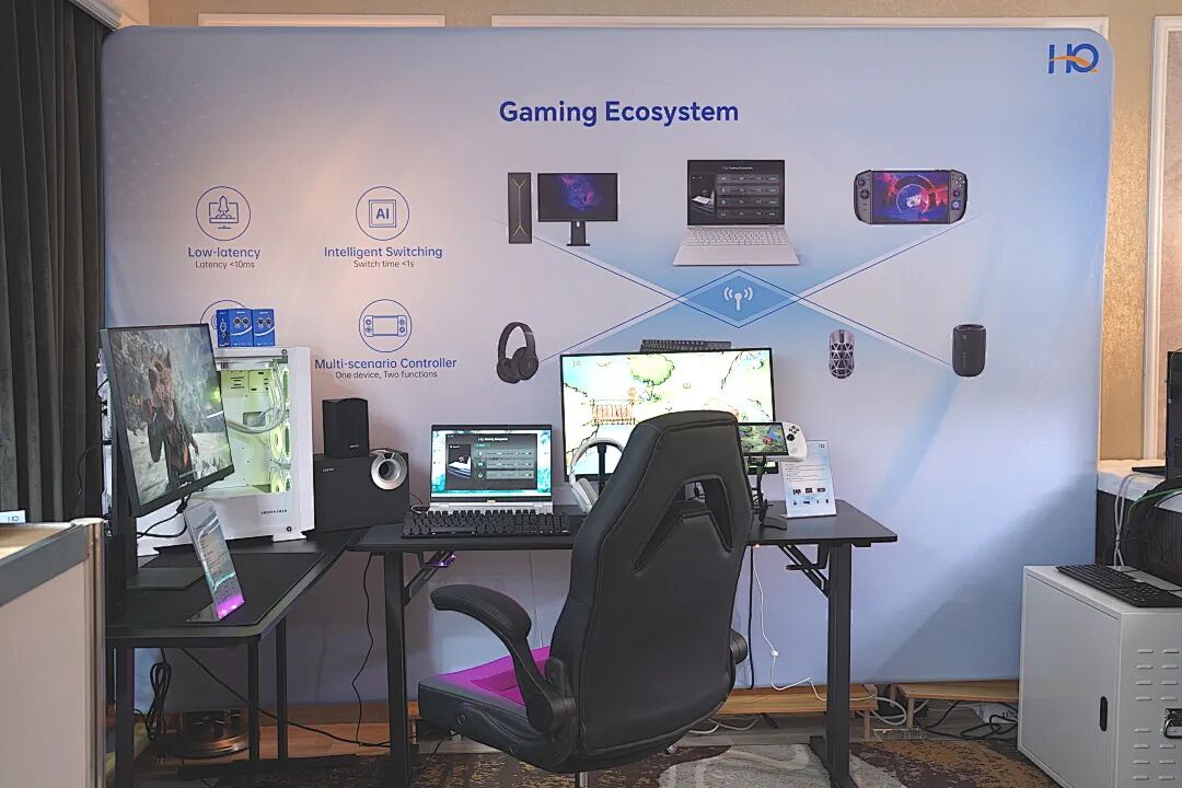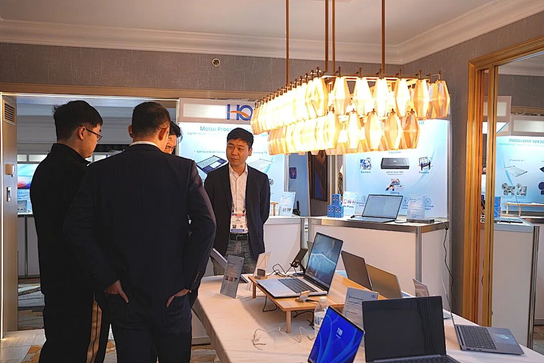 为核心,展示了其在智慧商业领域的综合实力。展品涵盖1kg轻薄本、可插拔摄像头笔记本、AI本、游戏本、打印机、显示器、X86平台掌机等,覆盖从高性能娱乐到高效办公的全场景需求,充分体现了公司在整机、外设及系统方案上的综合设计能力。