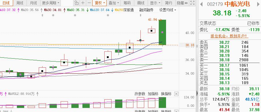 今天低开低走至收盘跌幅5.91%,今天受指数影响所以板块都回调了,个股也是,但是中航趋势未变早上也有跟大家说了看看有没低吸的机会,今天就是机会,低吸进来博弈明天的反包,破10日线就落袋。