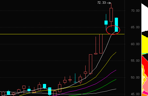 航天电器(002025)航天电器今日跌破五日线,直接跌停,跌停价就是收盘价:最终收盘就是 63.67 元,等于今天的最低价,相当于全天 “地板价” 收尾,没出现反弹迹象。我继续拿着看明日走势,继续回调直接清仓。反之继续持有等待触底反弹。