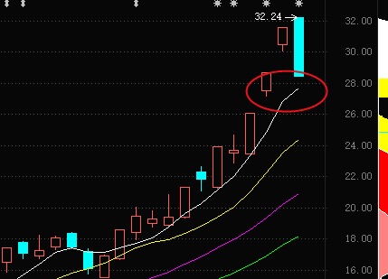 航天电子(600879)开盘就跳水,秒触跌停:今天开盘价 32.23 元,比昨天收盘价 31.56 元略高一点,但刚开盘没 2 分钟就直接砸到跌停价 28.4 元,虽然瞬间打开过一下,但根本没稳住,很快又被按回跌停板。继续拿着看明天走势,跌破五日线走,没跌破拿。