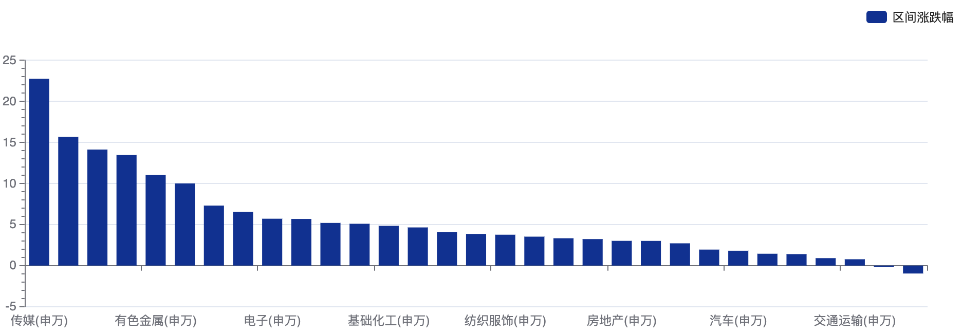 今年的行情也离谱得很,上面是申万一级行业年初至今的涨跌幅。开年不到两个星期的时间,像传媒行业的涨幅已经达到22.74%,各个板块之间的涨跌状态很不一样,比较惨的银行、农林牧渔今年还是下跌的状态。
