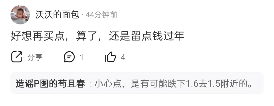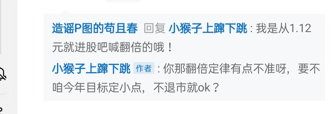 $ST易购(SZ002024)$ 那个翻倍哥不知好歹如果他是真散户,听我的早就在苏宁上岸了,他不仅不反思,还恩将仇报,只能说明他是托了。。骗人说1.12就开始说翻倍,群里群众眼睛是雪亮的,那个时候是真翻倍,没看到他在群里一天一贴声嘶力竭地叫。他现在说我叫散户卖低位筹码,自己却叫沃沃面包小心1.5。麻烦睁大二果看看,我是叫跌破1.66止损,1.61买,1.66看邂逅喊多就又说卖,到现在为止我说错了么?如果下午明天股价又拉起来不去1.5呢?你说话一会看翻倍3.36一会看1.5。你是什么居心呢?