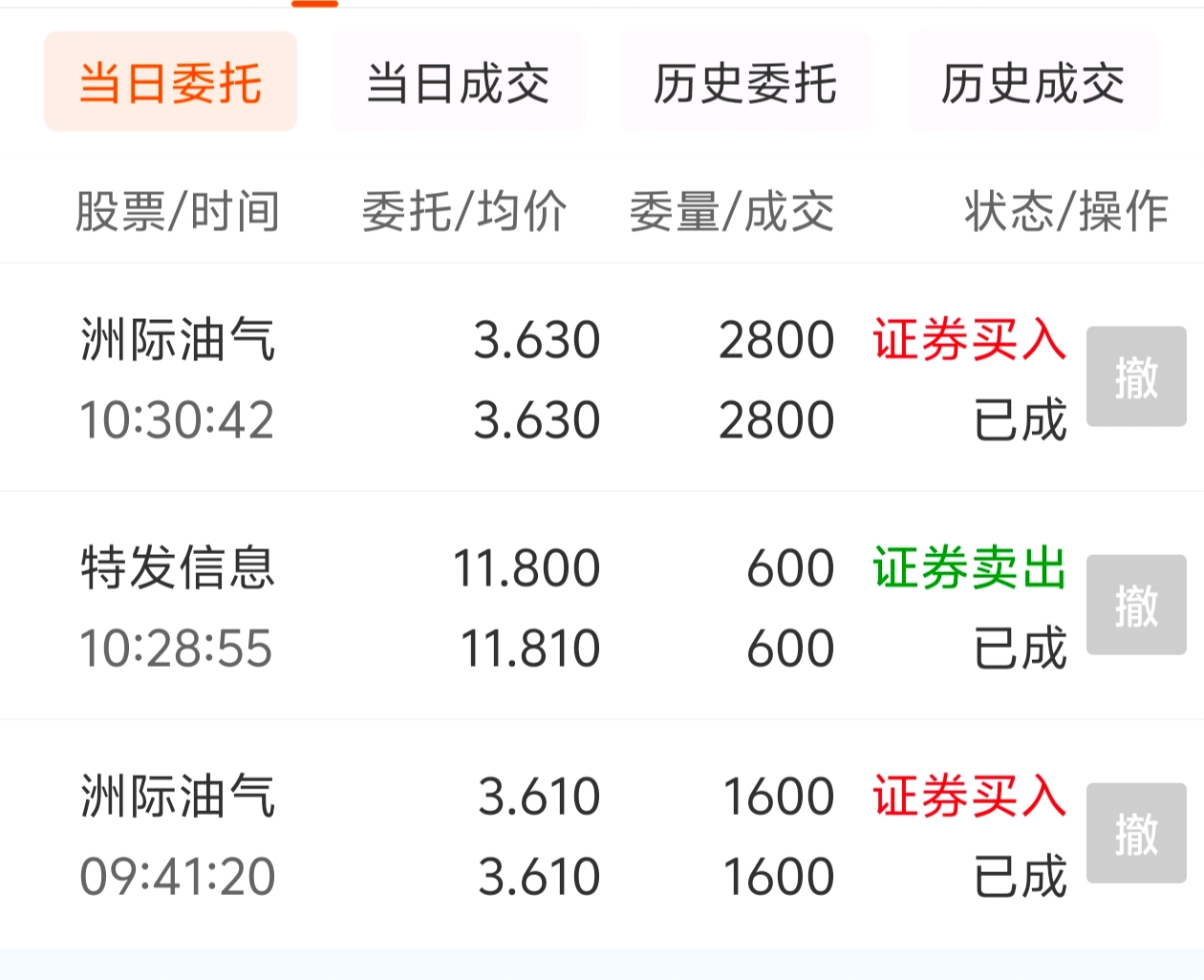 $洲际油气(SH600759)$ 今天亏的肉疼的一天,但唯一让我欣慰的是昨天今天两天算在一起,还勉强红了一百块,让我晚上吃面的时候还敢开着灯吃