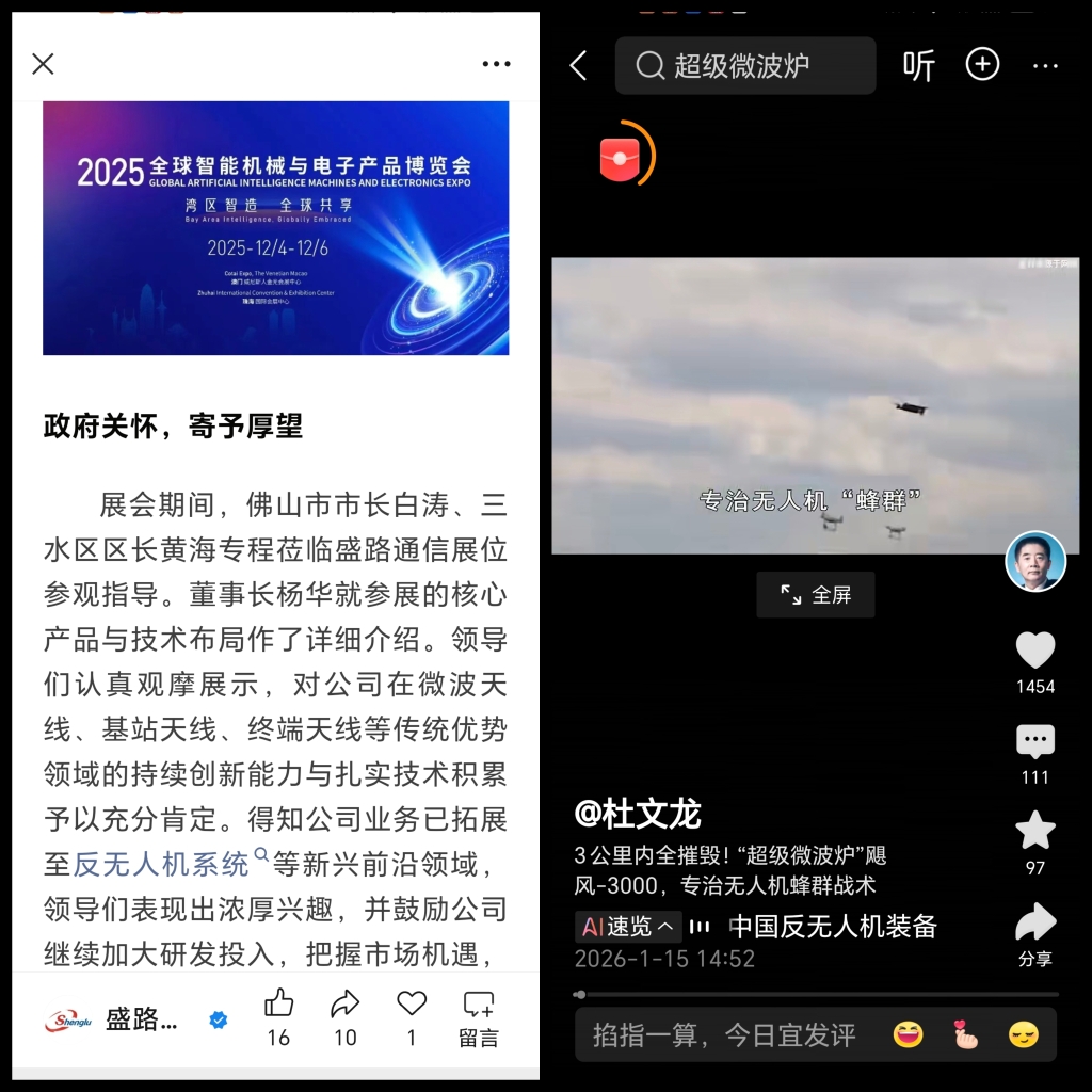 $盛路通信(SZ002446)$ “飓风-3000”高功率微波武器系统确实代表了当前反无人机技术,特别是应对无人机集群(或称“蜂群”)饱和攻击的最前沿解决方案之一。它通过发射高功率微波,能对大片空域内的无人机电子设备进行广域“面杀伤”,从而有效克制了传统防空系统在应对低成本、大规模无人机攻击时面临的成本和效率困境。下面的表格汇总了“飓风-3000”的核心特性,帮助您快速了解其关键信息。特性分类 具体说明核心优势 专治无人机“蜂群”饱和攻击、单次使用成本极低、受天气影响小、攻击速度达光速杀伤机制 面杀伤:发射高功率微波,对扇形区域内的多目标实现群体毁伤作用原理 通过“前/后门耦合”效应,烧毁或瘫痪无人机内部的电子元器件和电路有效射程 对无人机目标有效作用距离可达3000米关键技术 氮化镓(GaN)半导体技术(高能效)、数字波束成形技术(灵活瞄准)作战流程 雷达探测 → 光电系统精准锁定 → 高功率微波毁伤 体系化作战与战略意义“飓风-3000”的强大并非孤立存在,它的真正威力在于被整合进一个多层次、一体化的防御体系中。* “铁三角”防御体系:在现代防空理念中,“飓风-3000”与激光武器、传统弹炮系统共同构成末端防御的“铁三角”。当敌方无人机蜂群来袭时,“飓风-3000”率先进行大范围清场,利用面杀伤优势消灭绝大多数目标;漏网的少数无人机或经过特殊加固的“高价值”目标,则由响应速度快、打击精准的激光武器进行“点杀”;最后,冲到极近程的残余威胁则由传统火炮或近防炮予以清除。这种分工形成了远近结合、没有死角的防御网。* 颠覆战争经济学:“飓风-3000”最革命性的影响在于它彻底扭转了攻防双方的成本对比。其“弹药”是电能,只要供电充足,就能近乎无限次发射,单次拦截成本极低。这使得防御方首次能够以可持续的成本,应对敌方发起的低成本饱和攻击,从根本上破解了“破产式防御”的困境。 盛路通信的角色盛路通信,其研发方向与“飓风-3000”所依赖的核心技术高度契合。虽然公开资料未明确其直接参与“飓风-3000”项目,但该公司在微波/毫米波射频技术领域有深厚积累。而氮化镓(GaN)功率芯片、微波单片集成电路(MMIC)以及相控阵天线技术,正是实现高功率微波武器小型化、高效化和实战化的关键。因此,盛路通信的相关技术能力,属于支撑此类尖端武器发展的上游核心环节。