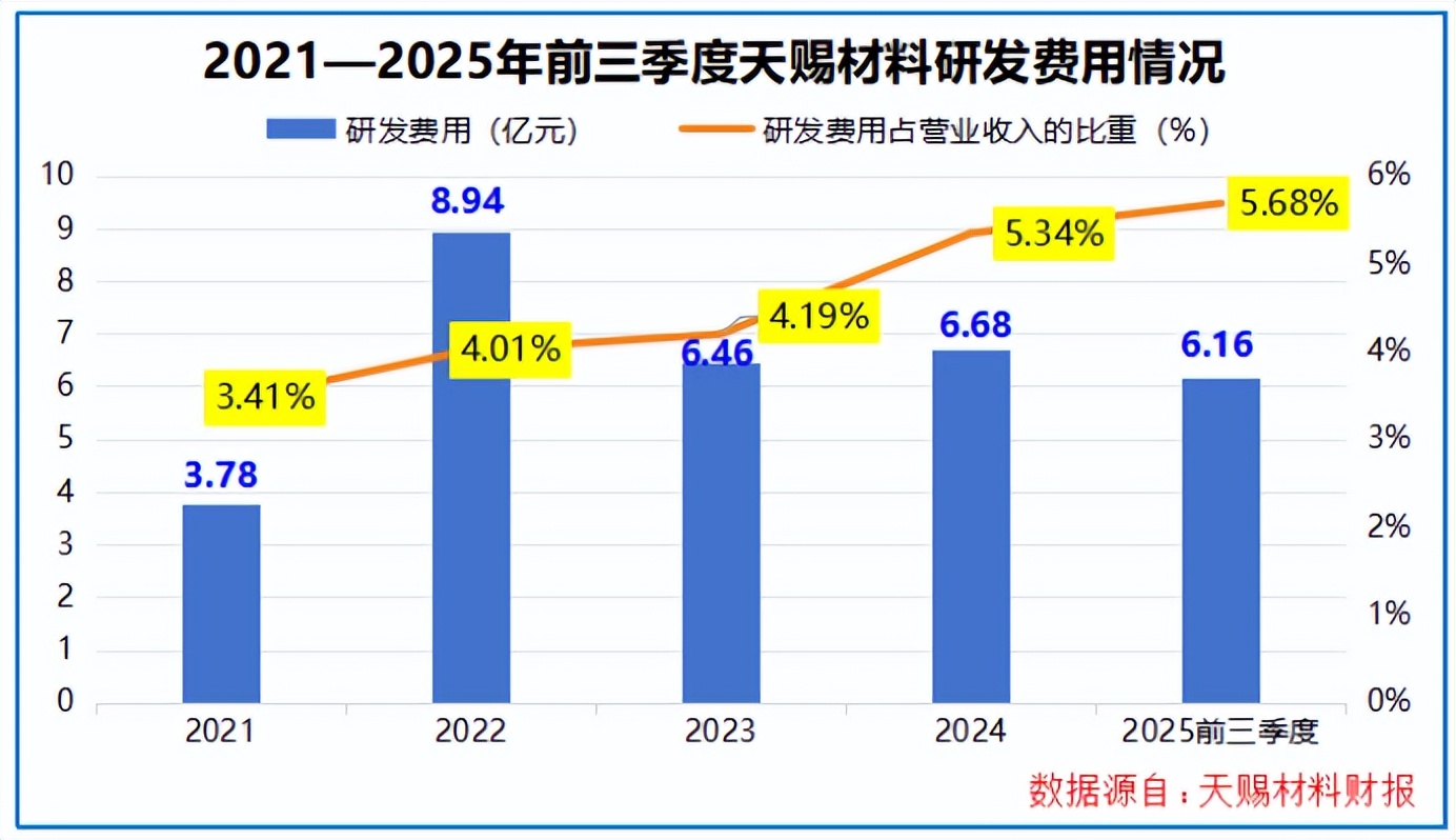 在科技飞速发展的时代,研发投入是企业保持竞争力、实现长远发展的关键因素。天赐材料深谙这一道理,在研发上始终不遗余力 。仅 2025 年前三季度,公司研发费用就高达 6.16 亿元,相比之下,同行新宙邦同期的研发费用仅为 3.6 亿元,天赐材料在研发投入上的优势显而易见 。