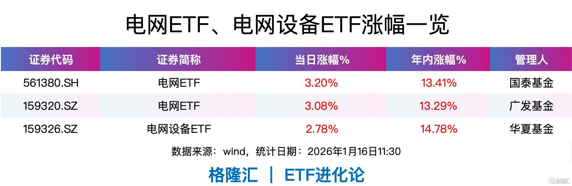 电网ETF涨超3%,电网设备ETF涨2.78%。