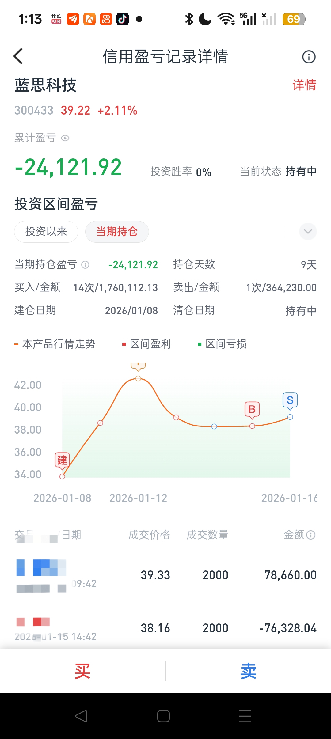蓝思科技基本仓区别三生国健,破胆买入价42元,目前完成了足够的仓位,成功换手7000股,波动感觉中,浮亏25000元。
