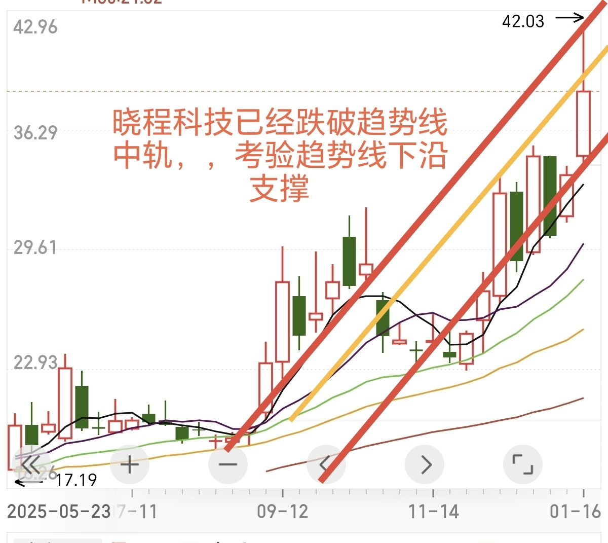 晓程科技第一目标价位42.5 波动上沿45.4 波动下沿39.5 由最高价42.03 可知晓程科技第一目标价位基本完成,收盘价38.44 已经跌破波动下沿39.5 股价大概率将向下回调,短线操作五日线之上不看空,如果周一继续往上拉,并且伴随大幅度放量,那就大概率是做双头诱多,如果跌破五日线,那么大概率将回补下方缺口!这里无论怎么走,风险要大于机会,追高很容易被套!大家一定树立正确的投资价值观,慢就是快,快反倒是慢!