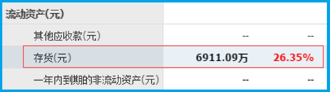 侦探的视线移向了公司的仓库——存货。数据显示,其存货为6911.09万,同比增长了26.35%。