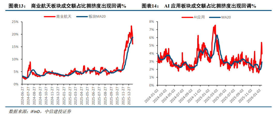 主题投资方面,商业航天板块和AI应用板块前期拥挤度过高,现已迎来调整。当前商业航天板块平均PE达83.8倍,远超行业合理估值,14家上市公司密集发布风险提示公告。AI应用方面,AI医疗和GEO板块代表性个股短期涨幅显著但后续波动加剧。上述板块均需等待回调释放风险,聚焦优质标的。